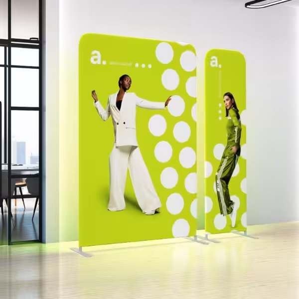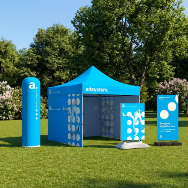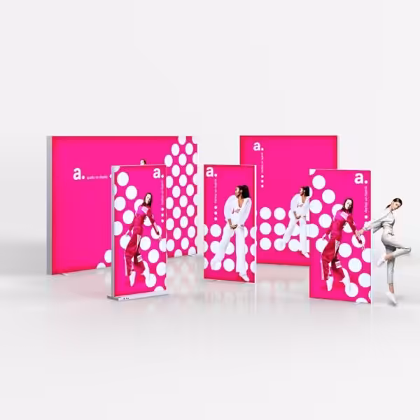 Ricevi il tuo set completo a casa o in azienda. Grazie al montaggio senza attrezzi e alla struttura leggera, sarai subito pronto a comunicare con efficacia.